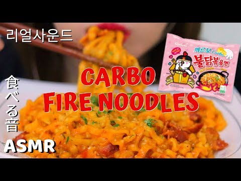 Today I'm eating Samyang Carbo Fire Noodles. 까르보 불닭볶음면 리얼사운드 먹방. 韓国の激辛カルボプルダックポックンミョンを食べる。 辛いけど美味しい...